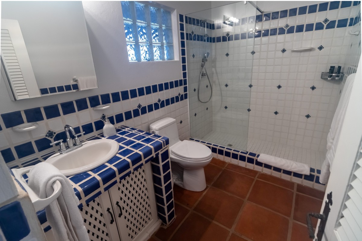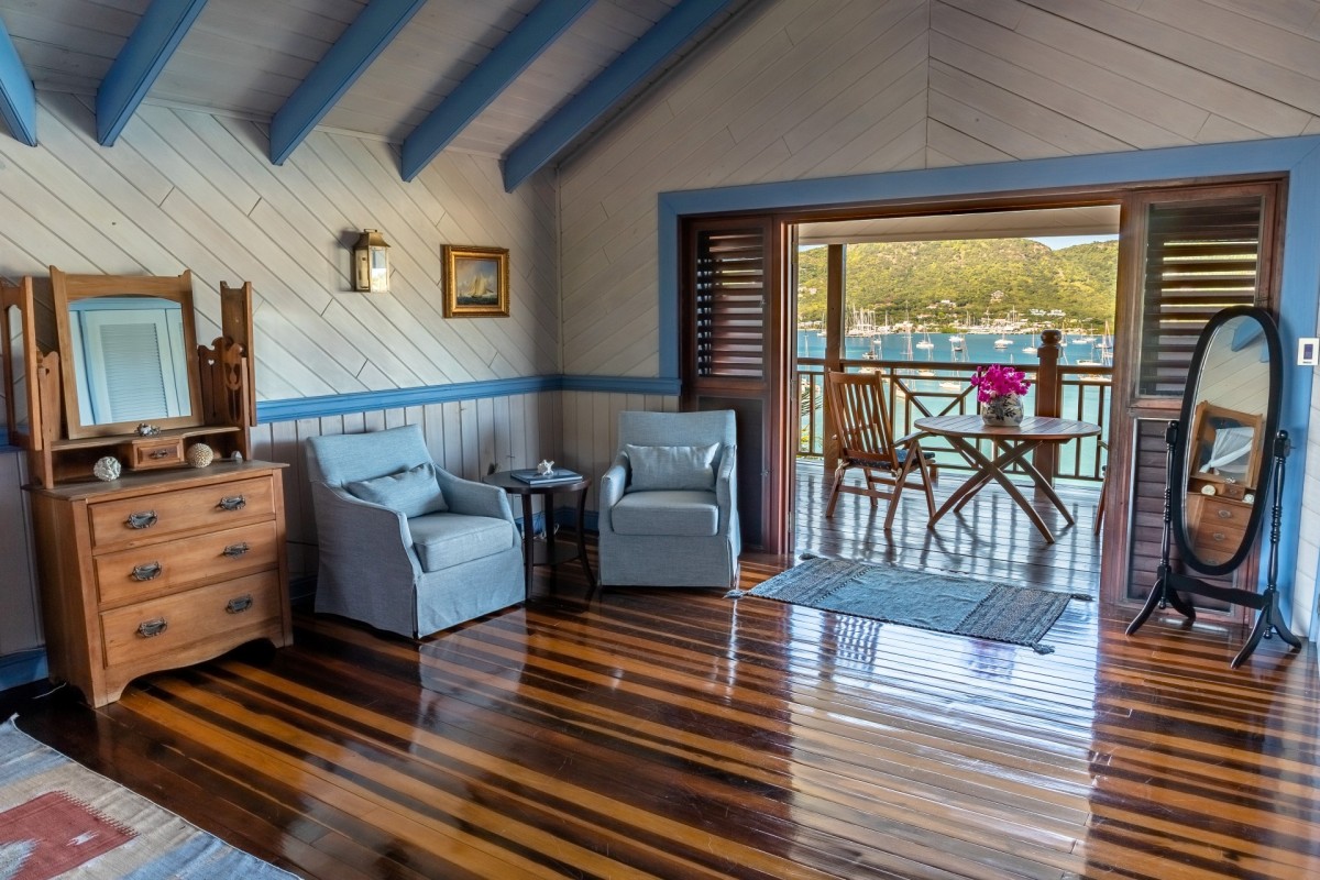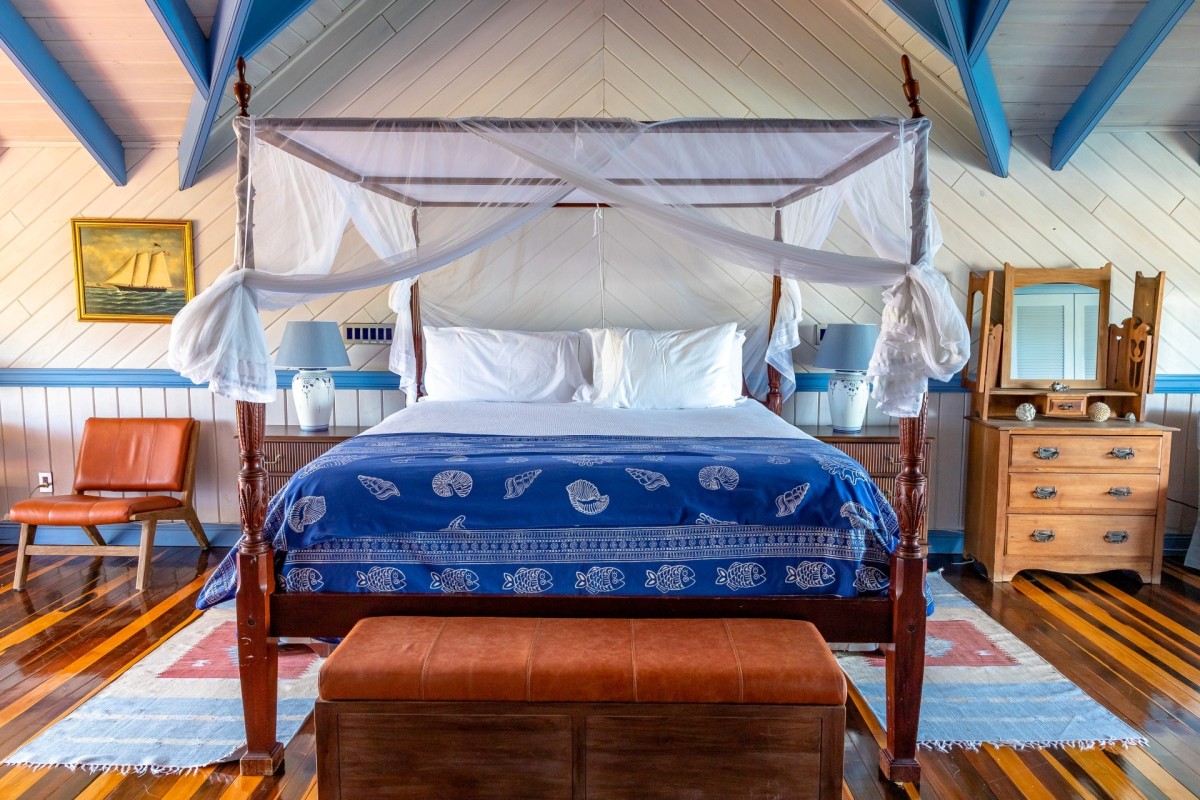 Bedroom 1: Main floor bedroom with a king-size bed (can be made up as two single beds), A/C, ceiling fan, walk-in closet, private veranda with sea and harbour views and en-suite bathroom with shower, double vanity and WC. 2 guests maximum.
