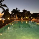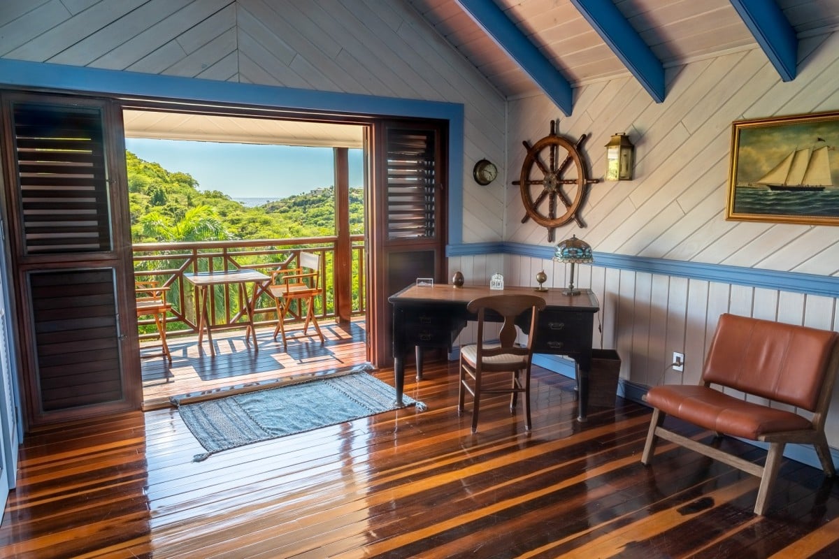 The bedrooms are divided between the great house and a guest house. There are three in the main house, and all are king suites with verandahs or balconies and luxurious baths. The guest house is self-contained and features two suites with private baths and garden views.