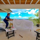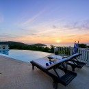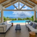 Designed for both indoor comfort and outdoor indulgence, the villa boasts expansive patios and a fully equipped outdoor living area. This includes a stylish sofa set, a gas BBQ with utensils, a bar area with high stools, a spacious dining table, and numerous lounge chairs surrounding the stunning infinity pool—perfect for soaking up the sun or enjoying the Caribbean breeze.