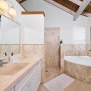 Bedroom 5: Bedroom with a king-size bed, walk-in closet, A/C, ceiling fan, garden view and en-suite bathroom with bath tub and shower, vanity and WC. 2 guests maximum.