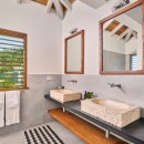 With six beautifully appointed en-suite bedrooms, each featuring a modern bathroom, the villa comfortably accommodates 12 to 14 guests. Each room is tastefully decorated and equipped with walk-in closets, ceiling fans, air conditioning, mosquito nets, and large French doors that invite in gentle breezes and stunning sea or garden views.