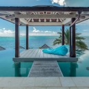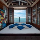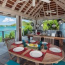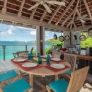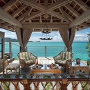 The great room is an oversized pavilion that has been furnished as a tropical interior space, but without the walls to block those amazing sea breezes and sea views. In fact, the entire villa has been designed to erase the lines between indoors and out, so the terrace areas are just oversized entries into the "interiors" that include the open-air kitchen and dining pavilion, the central lounging area and the verandah at the rear of the villa.