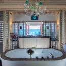 A blend of Asian and island influences makes the property a remarkable sight. One of the most impressive areas is the infinity-edge pool with its "island" gazebo ideal for hours of relaxation as you are surrounded by the pool's waters and gaze out at that amazing scenery. The sun deck is fully furnished with oversized lounges and opens into the wrap-around, covered terrace. This features a comfortable lounge and a hot tub just steps from the great room.
