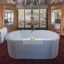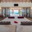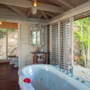 The bedrooms continue this open to the air experience with a king suite offering a private terrace, an enormous ensuite bath with a soaking tub in full view of the sea and more. The second suite is a queen size suites with a large ensuite bath that opens to the gardens.