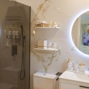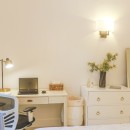 Bedroom 2: Bedroom with a queen-size bed, ceiling fan, A/C, WiFi, safe, desk, and adjacent bathroom with shower, vanity and WC. 2 guests maximum.