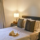 Bedroom 1: Bedroom with a queen-size bed, lounge area, ceiling fan, A/C, TV, WiFi, safe, and en-suite bathroom with shower, vanity and WC. 2 guests maximum.