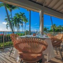 This is a space with high ceilings meant to allow those delicious breezes to head inside. There is a beautifully and casually decorated living room, formal dining room just a few steps up, and the elegant and fully-equipped kitchen. The bedrooms are divided between the floors, with two upstairs and one on the main level. They each have terraces, private baths and king beds.