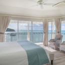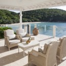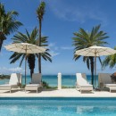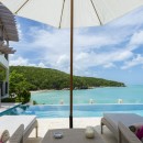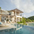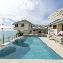 Here, you can savor even more outdoor living space including the barbecue area and additional sun beds. The shared living spaces in the villa include a massive great room that includes a media room and opens to the sea views. The full-sized gourmet kitchen and dining room are also part of the shared spaces, but the five bedrooms have been designed to maximize privacy while catching the scenery.