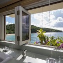 Beautifully designed as a series of interconnected buildings, it creates an array of outdoor and indoor living spaces to enjoy. At the farthest end of the point is the sun deck that backs up against an open air building that houses an al fresco dining room and living room. These face out to the sea, but also open towards the pool area below. Just steps from the beautifully free-form pool with its curved edge, the shared living spaces are found, but as you pass through this area, you reach a second pool terrace.
