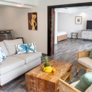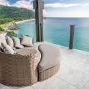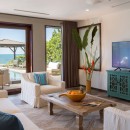 However, you may find it difficult to step away from your villa. The lower level is a cabana styled entertainment space that opens to the beach and which might also serve as another bedroom. The main level features a generously sized infinity edge pool with separate dining pavilion, and outdoor lounge. Inside, the great room features island inspired décor and an open floor plan with dining, lounging and gourmet kitchen spaces. There are four spacious bedrooms, with the master suite offering an enormous terrace gazing out to sea. Three suites are king and the fourth is a double twin. All are al fresco and provide garden or sea views.