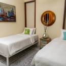 Bedroom 2: Upper floor bedroom with two single beds (can be made as king size bed), A/C, ceiling fan and, private terrace with ocean view en-suite bathroom with shower, vanity and wc. 2 guests maximum.