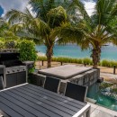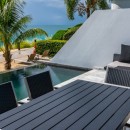 This villa comes with a fully equipped terrace outside. It wraps around the property and comes with beachfront access, an outdoor dining space, and a barbeque grill for cooking delicious meals. There is also a private pool available so guests can get their feet wet without walking down to the beach.