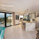 Inside, the villa exudes elegance and comfort. The generously proportioned open-plan living area is adorned with expansive sliding doors that connect to the wrap-around deck, providing seamless indoor-outdoor living. This space encompasses a beautifully furnished large lounge, a dining area, and a fully equipped open kitchen, ensuring a welcoming environment for relaxation and entertainment.
