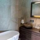 Bedroom 1: Ground floor Master bedroom with a king-size bed, TV, A/C, ceiling fan, access to terrace with ocean views and en-suite bathroom wtih bathtub, shower, double vanity and WC. 2 guests maximum.