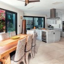 The four bedrooms are all situated on an upper level and are furnished with large and private baths. The master suite has a terrace and king bed, while the remaining suites are also king suites with separate access to the terraces.