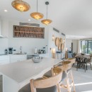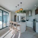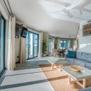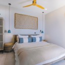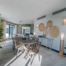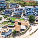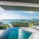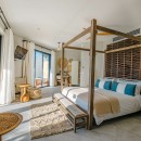 This elegant two-bedroom Villa Seastar offers breathtaking views of the ocean and beach. Designed with Caribbean charm in mind, it features striking driftwood-style four-poster beds, cozy sofas, and inviting chaise lounges. The contemporary interior blends natural textures and soft, earthy tones for a relaxing, stylish ambiance.