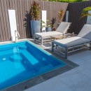 The outside is just as stunning as the interior of this well-appointed suite. There is a large outdoor lounge area where guests can relax and sunbathe. The patio also has a selection of sunbeds and an infinity swimming pool where you can take a dip at any time of day.