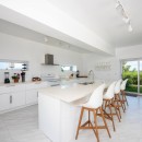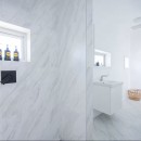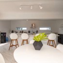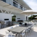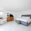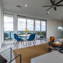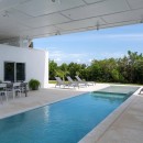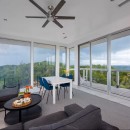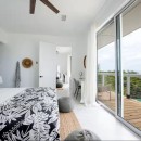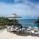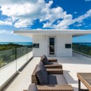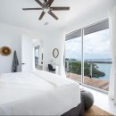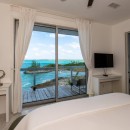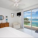 Inside, Villa Entos impresses with a marble-tiled foyer that leads to the main floor via an elegant staircase. Upon reaching the top, you’re greeted by one of the island’s most spectacular rooms—a glass-walled lounge with 270° views of Eleuthera and the ocean. This bright and airy space is perfect for both relaxing and dining, with a secondary kitchen for guests’ convenience. Beyond the lounge are four master suites, each featuring private bathrooms and floor-to-ceiling glass walls that frame breathtaking ocean views. Each suite has its own private entrance from a balcony that spans the entire length of the second floor. For larger groups, these suites can also be connected internally.