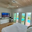 Bedroom 1: Bedroom with a queen-size bed, ceiling fan, A/C, WiFi, TV, access to pool patio and en-suite bathroom with shower, vanity and WC. 2 guests maximum.