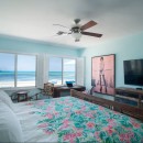 The outdoor space is equally impressive, with a large terrace, a gazebo overlooking the beach, and a heated private pool. The hot tub, perfect for four people, provides a luxurious way to relax after a day in the sun. Whether you're enjoying a meal on the expansive terrace or lounging by the pool, the mesmerizing views of the ocean make every moment unforgettable. Inside, the living room features a 47-inch flat-screen HDTV with a home theater system, perfect for cozy nights in. For those who enjoy cooking, the kitchen is a dream—complete with stainless steel appliances, granite countertops, a bar area, and ample space for preparing gourmet meals.