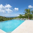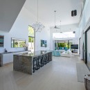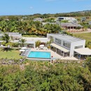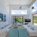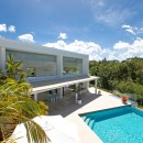 This contemporary home has been designed with the airy environment in mind, and many of the walls are actually floor to ceiling glass doors meant to allow the Caribbean breezes to reach into the living spaces. The Villa Atelier is a two-story structure tucked into a massive garden of native flowers, trees and shrubs. Local stone enhances the textural experience of the gardens and grounds, and everything transitions seamlessly at the impressive terrace.