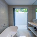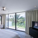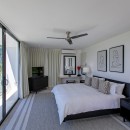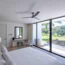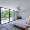 There are four bedrooms in the Villa Atelier, and ample room for up to eight guests. The main bedroom is on the second floor and features a private balcony with en suite bath and an outdoor shower. There are three further bedrooms on the main level. One has an en suite bath and another outdoor shower, while the two remaining bedrooms share one large and luxurious bath.