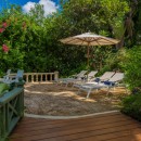 Guests of Secret Cove 2 can enjoy preparing meals in the state-of-the-art kitchen or dining on the patio, savoring the cool Caribbean breezes and the soothing sound of waves lapping against the shore. Additionally, there is a charming gazebo located on the stairs that lead to the beach, providing a delightful spot to enjoy a refreshing sundowner before heading out for dinner.