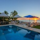 The five bedrooms are divided between the ground and upper floors. The master suite is on the upper level and opens to a private balcony. The other bedrooms are also all king suites (or can be converted to king suites) and feature large and private baths. Two of the remaining four also feature a balcony, as does the ground floor bedroom, which opens to the pool terrace.