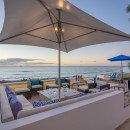 As if that were not enough, the three-story villa features an abundance of onsite amenities and spaces that guarantee an unforgettable experience whether visiting with a group of friends or the family. It starts on the ground level where an oversized terrace features a large open-air banquette sofa lounge, a sun deck, a small swath of lawn, an al fresco dining area, and the oversized plunge pool. All of this faces out towards the sea and serves as the perfect spot to savor sunset each day.
