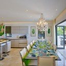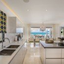It backs up to the verandah which is also designed to work as an outdoor living space with a lounge, barbecue area, and direct access into the kitchen space. Here, you find an oversized dining table that opens towards a large breakfast bar and then into the gourmet kitchen. Oversized and designed to allow anyone to enjoy easy drink or meal prep, it faces out towards the views and may not get much use thanks to the presence of a house chef!