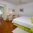 The villa faces the pool and its terrace is furnished with a formal, al fresco dining area as well as a comfortable outdoor lounge. Stepping in from this beautiful living space is the sunken living room. With its terra cotta tile floors, high ceilings, and pops of color, it instantly relaxes. Large sofas and generous arm chairs encourage hours of conversation, and just a few steps up takes you to the formal dining room that opens into the gourmet kitchen. Though guests here enjoy the services of a cook and housekeeper, you will still want to enjoy the use of this lovely kitchen, using it to whip up snacks or even light meals featuring local ingredients.