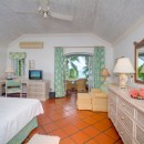 The villa is a three-bedroom property. Two of the bedrooms are located at a level above the shared living spaces. These feature private patios that deliver unprecedented sea views. The third is at the ground level and it opens to the terrace. All of the bedrooms are large with private, en suite bathrooms and luxury linens.