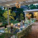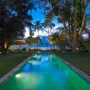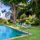The lounge area is shaded and equipped with ceiling fans. It opens onto the gardens and the pool. The 50-foot pool features Italian tiling with inlaid mosaics and is the perfect setting for relaxing with cocktails in the evening. From the pool, you can progress to the garden, and finally to the beach by means of a private gate.