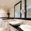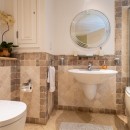 The master bedrooms features direct terrace access, and both it and the other bedroom (with a nice balcony open to the view) feature private, en suite bathroom done up with marble and offering whirlpool tubs.