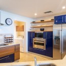 Inside the villa, you have a covered terrace with another al fresco dining room, and this opens into the light and airy great room. Decorated in a neutral palette and featuring a banquet sofa and modern entertainment center, it is also an ideal gathering place. It spills over into the gourmet kitchen also done in a soothing blue and white palette, and the laundry room is just off the kitchen.