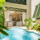 Step into the living areas of this hidden gem and prepare to be enchanted. The spacious veranda, featuring a bar, opens up to a sun terrace with captivating sea views. Surrounding the private plunge pool, lush landscaping creates a serene and tropical ambiance. Relax on the soft furnishings or dine al fresco on the open-air deck, complete with dining and lounge chairs. If you need to cool down, simply transition to the air-conditioned open plan living room, where glimpses of the Caribbean sea can still be enjoyed.