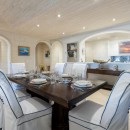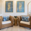 The terrace provides you with an al fresco dining spot, but just a few steps inside take you to the formal living room, colorful dining room, and the full-sized, gourmet kitchen. There are two bedrooms in the villa. The master bedroom suite has a king bed, an enormous bathroom with a tub, and access to the terrace. The second bedroom also features two twin beds and a large, private bath. It too has terrace access and some high-end entertainment equipment.