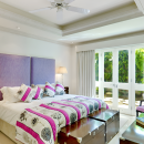 The three bedrooms are all en suite and located for optimal privacy. The master suite opens to the terrace, and the other two bedrooms open to the private path to one side of the villa. All are decorated in colorful styles with an emphasis on the tropical tone of the entire villa.