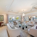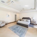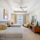 With a pale aqua and white palette, the interior is the epitome of relaxing and calming. There is a formal dining room, a large living room and then the five bedrooms are roomy and elegant as well, and all feature king beds, though three have en suite baths with tubs and showers. These suites also feature terrace access, and all have views.