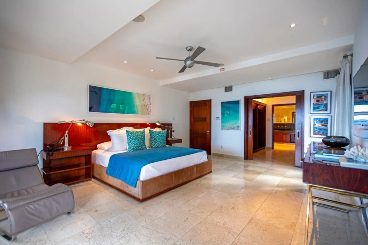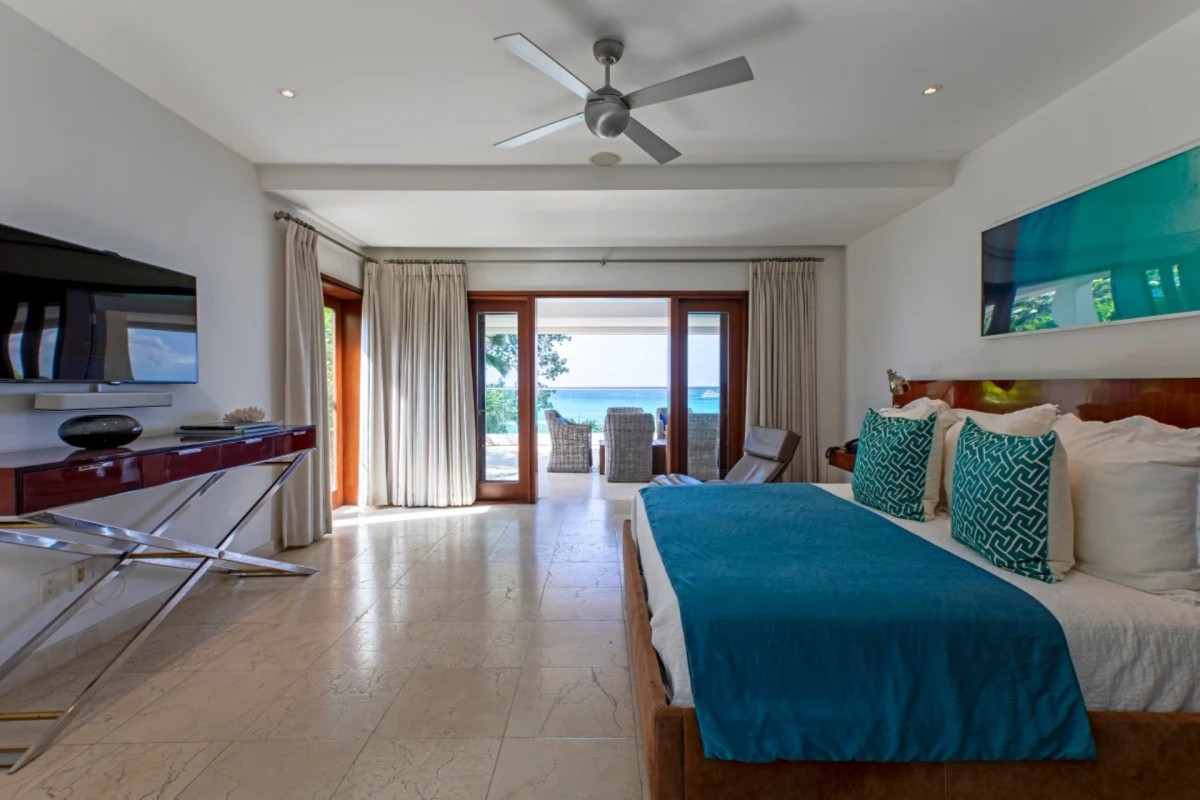 Bedroom 1: Master bedroom with a king-size bed, A/C, private terraces with sea view, walk-in closet and en-suite bathroom with bathtub, shower, vanity and WC. 2 guests maximum.