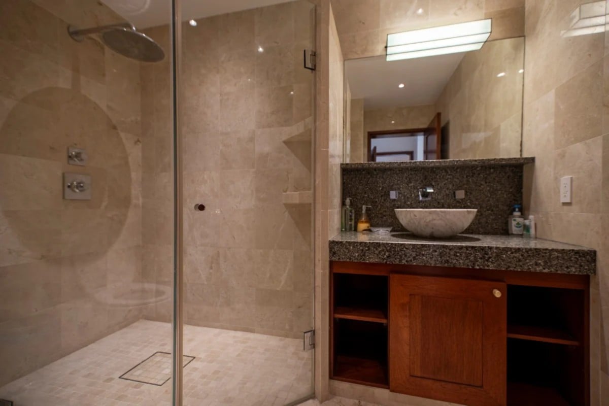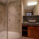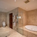 There are three bedrooms in this villa and each offers a luxurious en suite bathroom along with private terraces or views.