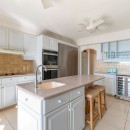 The property also features those terrace spaces that include more formal outdoor dining and lounging. These open into the beautifully decorated great room that takes its cues from contemporary décor as well as classic island palettes and hues. The high white ceilings and marble floors are well balanced by the more casual living room area that opens into the formal, indoor dining suite. Nearby stands the remarkable, modern kitchen with its high end appliances, marble island with space for dining, and direct access to the terrace. Though you do have a housekeeper and private cook, you can also feel free to enjoy use of the kitchen at any time.