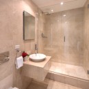The villa also offers the two large bedrooms. The master is a suite with a private terrace, a massive en suite bathroom, and a king bed. The second bedroom features a king bed and private bath as well, and the sofa can also be used as another bed for visitors or kids.