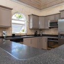 The ground floor hosts the Master bedroom with a King size bed and Bedroom 2 with Twin beds, both featuring walk-through closets and en suite double vanity bathrooms. The Master suite boasts a separate tub and shower, while Bedroom 2 offers a walk-in shower, and both have direct access to the shared pool deck leading to the expansive private swimming pool. The first floor accommodates another bedroom with a Queen size bed, complete with an en suite bathroom featuring a walk-in shower and double vanity.