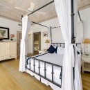 Bedroom 2: Bedroom with a four-poster king-size bed, A/C, ceiling fan, private balcony and en-suite bathroom with bathtub, shower, vanity and wc. 2 guests maximum