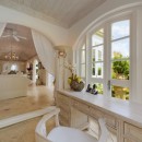 The interior decorations are rich and tasteful with a baroque, French farmhouse appeal—gold accents that are complimented by subtle flowers printed on the drapes or a black-and-white print of a palm tree, for instance, that modernizes a classical sense of casual opulence. Watch the sunset from the palisades with a bottle of fine French wine. Enjoy the magic of the garden against the golf green at twilight.