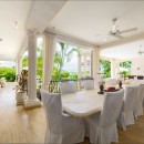 The expansive covered and open-air terrace, complete with high ceilings and ceiling fans, boasts an elegant outdoor dining area that comfortably accommodates 10—perfect for dinner parties and enjoying the warm Caribbean evenings. Additionally, a charming gazebo on the pool terrace provides a cozy dining spot for 4.