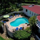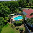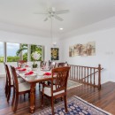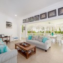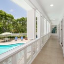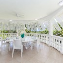 This holiday home seamlessly blends colonial charm with contemporary finishes and comforts. Upon entering, you are greeted by an inviting reception room that leads to a terrace dining area overlooking the pool, expansive lawn, and gardens. An open corridor offers views to the west and leads to the bedroom wings on both sides.