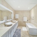 Bedroom 1: Master bedroom with a king-size bed, ceiling fan, A/C, TV, WiFi, and en-suite bathroom with bathtub/shower, double vanity, and WC. 2 guests maximum.
