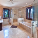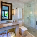 Bedroom 9: First floor Master bedroom with a king-size bed, A/C, TV, ceiling fan, private terrace with ocean view, his and hers closet, safe and en-suite bathroom with bathtub, his and hers showers, double vanity and WC. 2 guests maximum.